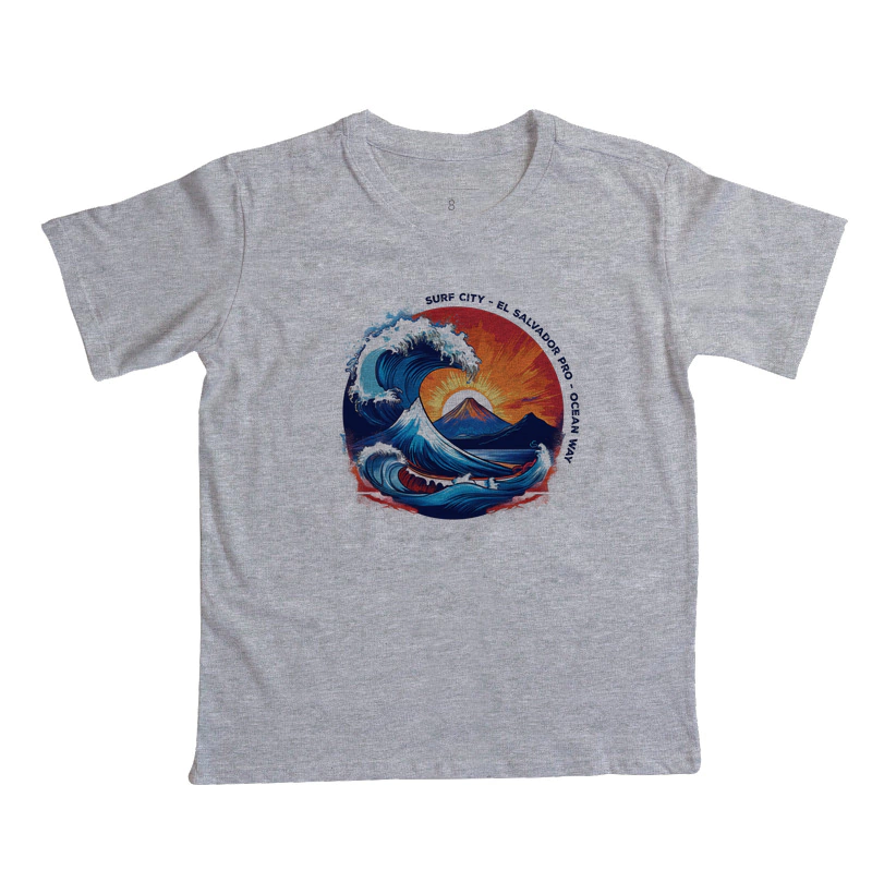 Produzida pela Reserva Ink, a Camiseta "Surf City El Salvador 2025" é uma estampa exclusiva criada para homenagear as direitas perfeitas de El Salvador, localizado na América Central. Palco da etapa do Campeonato Mundial de surf de 2025. Com modelagem infantil, entre 02 e 14 anos, ela é confeccionada em 100% algodão, garantindo um toque suave e macio à pele.